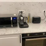 - ❓Is there a kitchen available at the apartment for guest use?Yes, the apartment is furnished with a fully-equipped kitchen and offers a microwave, an electric kettle, and a refrigerator as well.